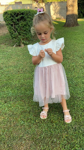 Wear this cuteness overload to your baby to make her like a little princess. Designed with high quality, it has an embroidery pearl on the skirt to make it more elegant. You will love this dress for your princess daughter to give them a charming look. It adds elegance and style to your baby girl. Perfect for parties and special occasions like birthdays, weddings, and other events. Casual yet elegant for your princess