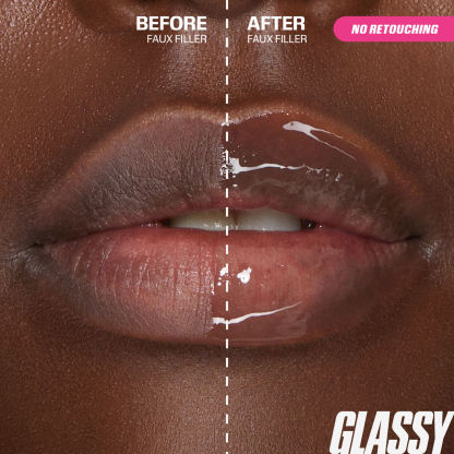- Finish with Mini Faux Filler Gloss in Glassy for the ultimate juicy-lip effect.