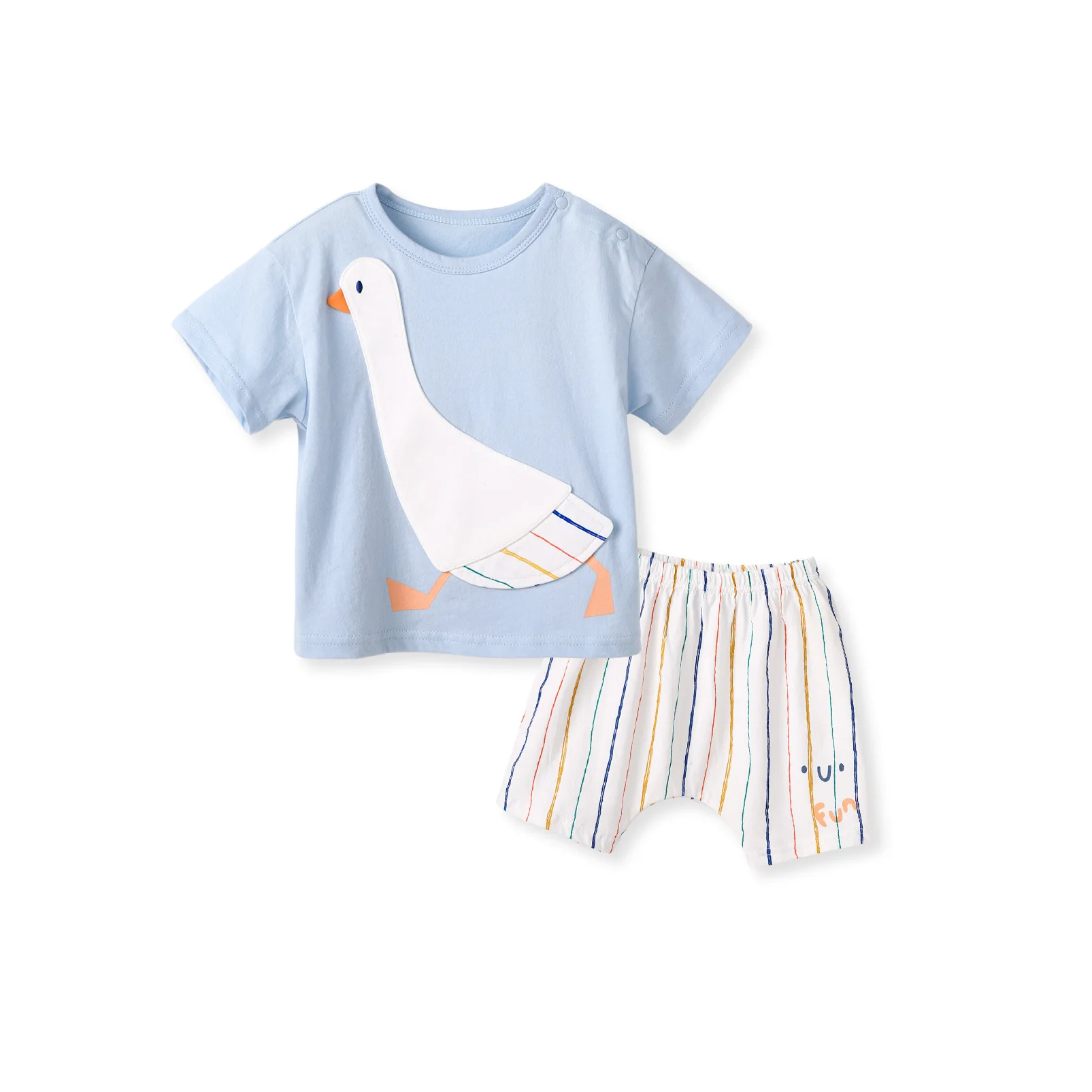 Summer fun is here! Let the fun begin with these 2 pcs short sleeve outfits. Soft and breathable, these quick-drying garments are perfect for your active kids. Featuring a short-sleeve shirt with a cartoon design and stretchy shorts. This set comes in a variety of colors and combinations to keep you and your child both happy.