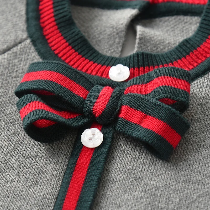 Made of soft cotton knit that gives comfortability while wearing this! You can wear it for any season. This cardigan romper features an elastic wrist and stretchy thigh with 3 closure buttons. It gives warmth and a cozy feeling while your kids had this. Add on: ribbon design that gives a classy look to the outfit.