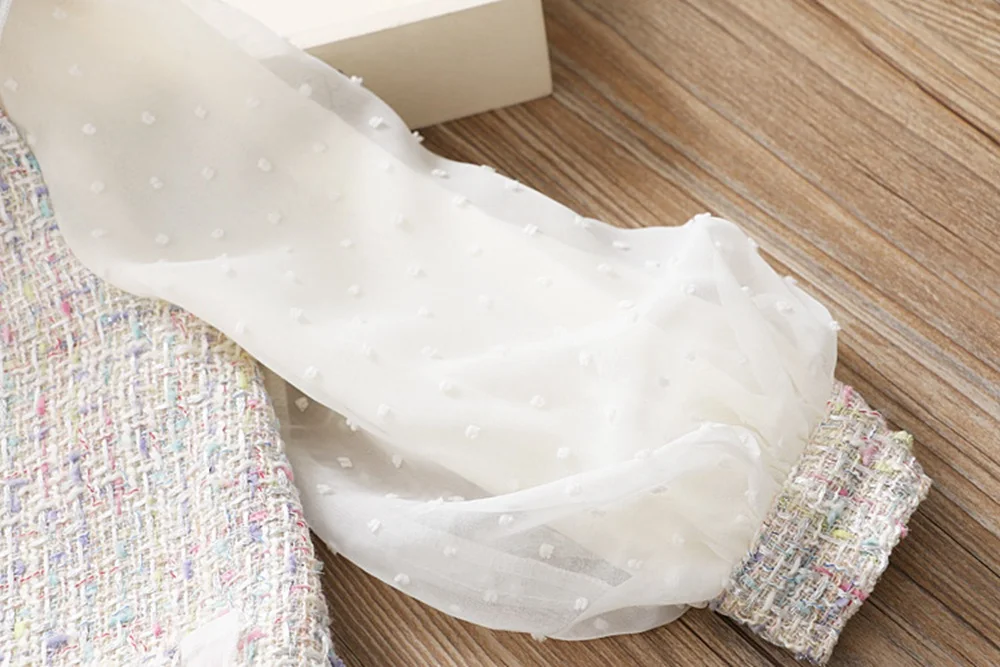 This long-sleeve lace dress will be a perfect addition to her occasion wear wardrobe. This sweet and playful dress features a peter pan collar with lace, knee-length with pearl buttons that add a touch of charm. The perfect dress for parties and special family occasions.
