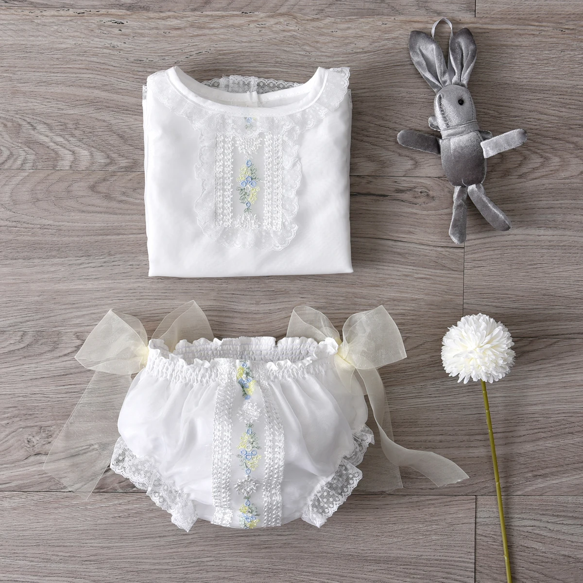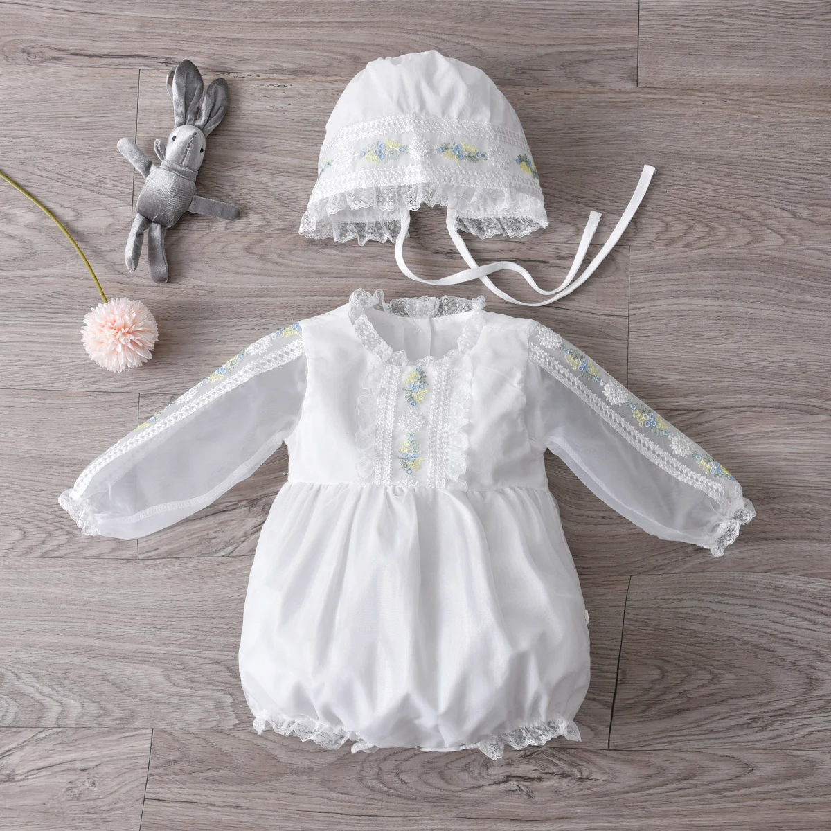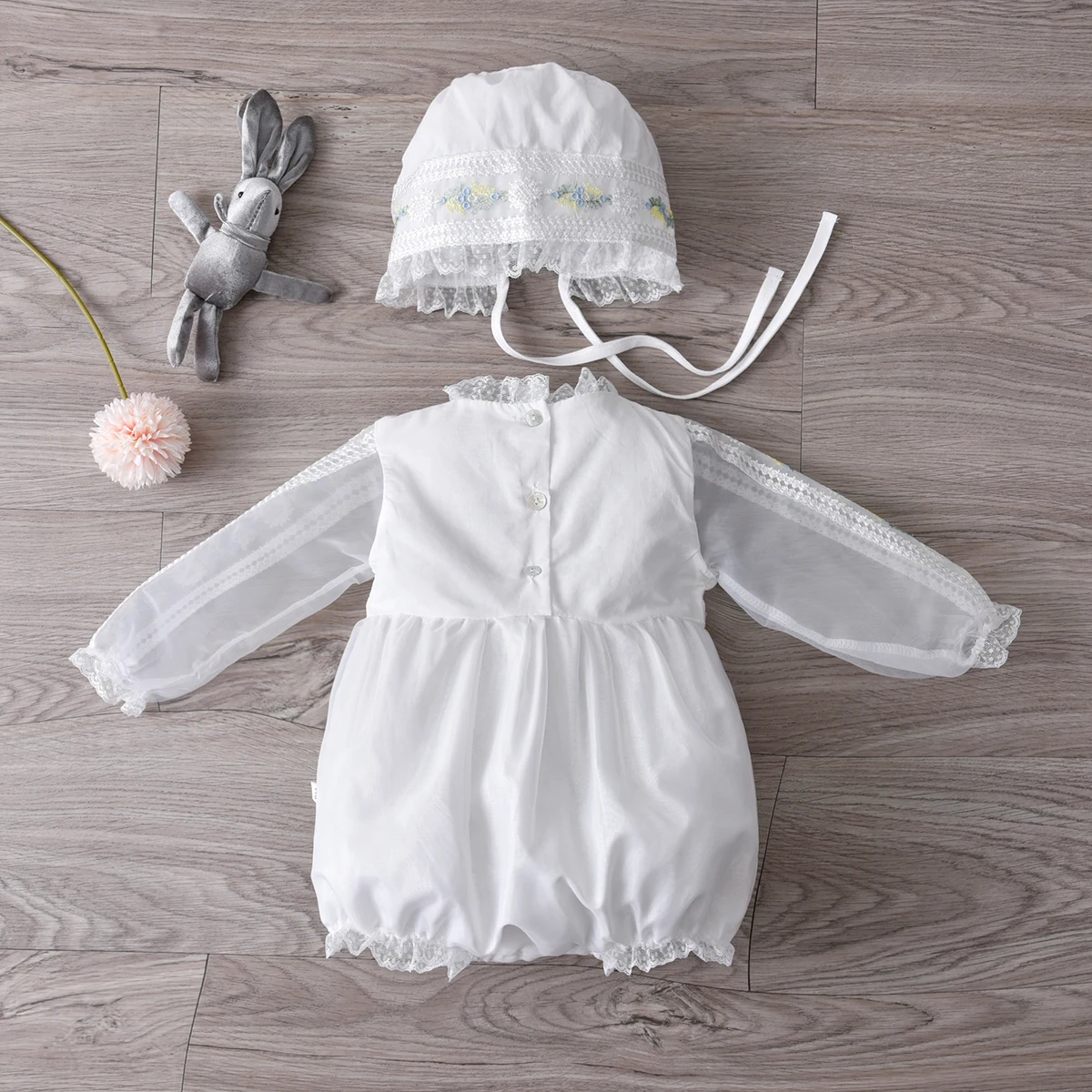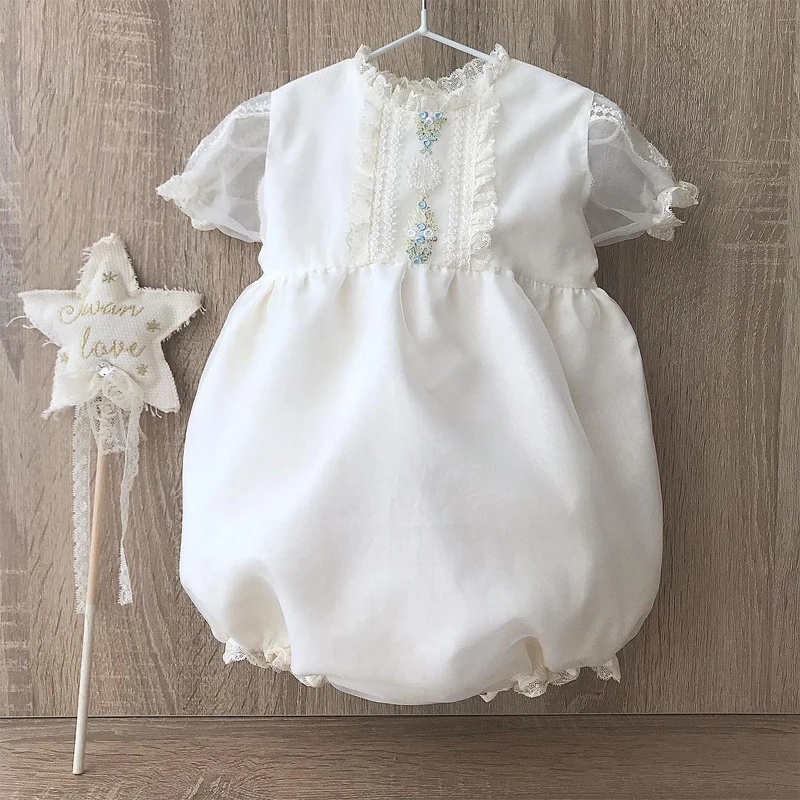 This charming white llittle jumpsuit with a pretty floral pattern and chiffon overlay create an adorably sweet look for your little ones. It is perfect for birthdays, baptismal, weddings, special occasions, or even everyday styling. It features a wand that your kids can pretend like a little fairy. It's also suitable in a theme party costume. It is made of lightweight materials. Let your kids look like a young fairy or angel that is sent from up above to spread cuteness.