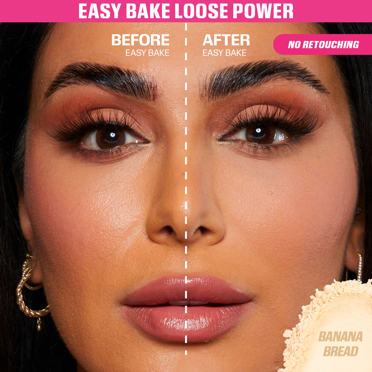 Easy Bake Loose Powder: A lightly pigmented, silky setting powder that bakes & sets, blurs the look of fine lines, and locks in makeup for 10 hours with an airbrushed finish.