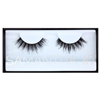* Apply a thin layer of glue (sold separately) along the band of the lashes. As a general rule, the glue should be no wider than the band of the lashes. Wait a few seconds for it to go tacky before application.