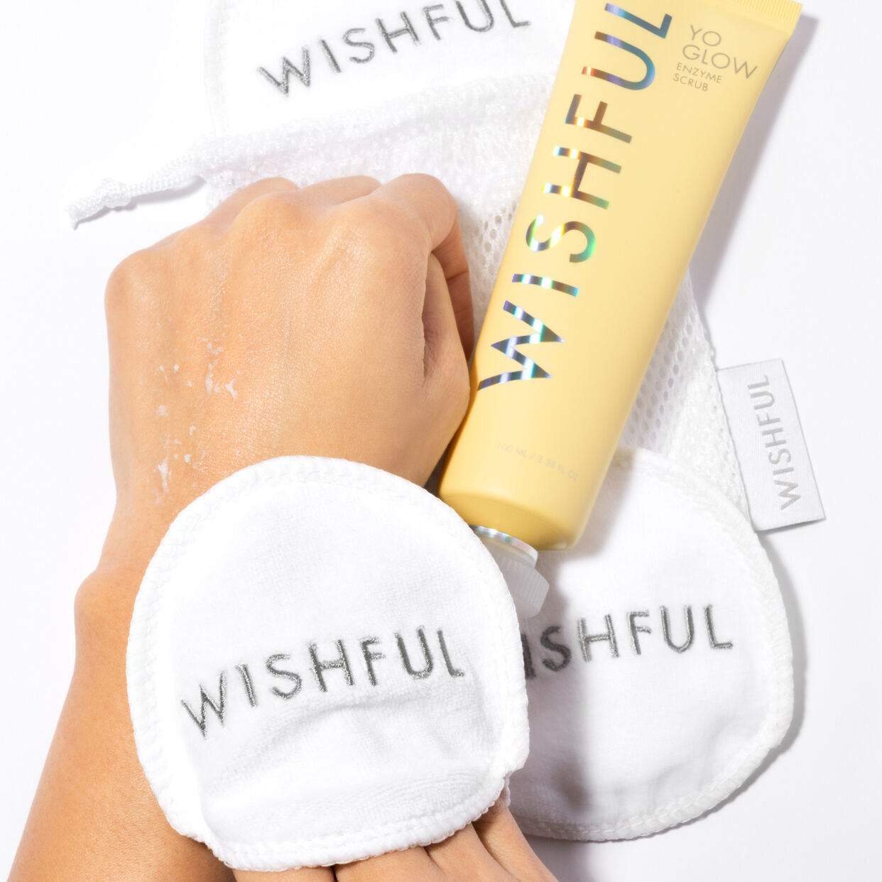 - Add your cleanser/exfoliator of choice direct to the skin, then using the face pads, wipe in circular motions.