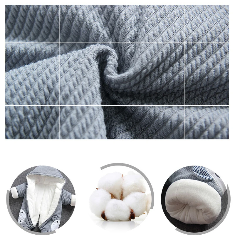 Adorable and durable, this Baby Romper in light pink or grey makes the ultimate style this winter. A cute combination of a romper and cute animal print. This style boasts complete coverage and comfort. The attached hood leads to keeping your baby's head protected and warm whereas the full-length front zip allows for easy diaper changes.