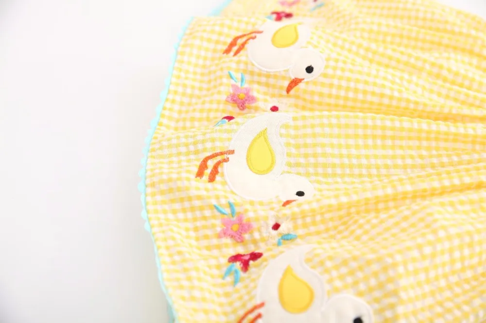 Add an old fashioned charm to your little one's wardrobe with this Vintage Duck Dress. It is a soft and breathable sleeveless outfit. Made of cotton and features a flower design that is sewn on the chest and a cute cartoon stitch on the skirt. Perfect for fine sunny weather while enjoying and having fun. Have this vintage duck dress for your little girls.