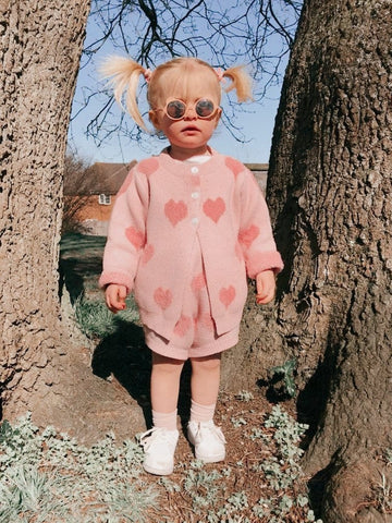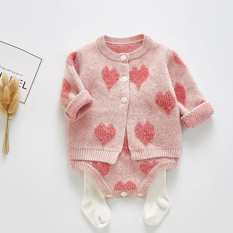 This love print sweater set is bundling up baby on a chilly day. It is made up of cotton material and the material is gentle to your baby's skin and comfortable to wear.
