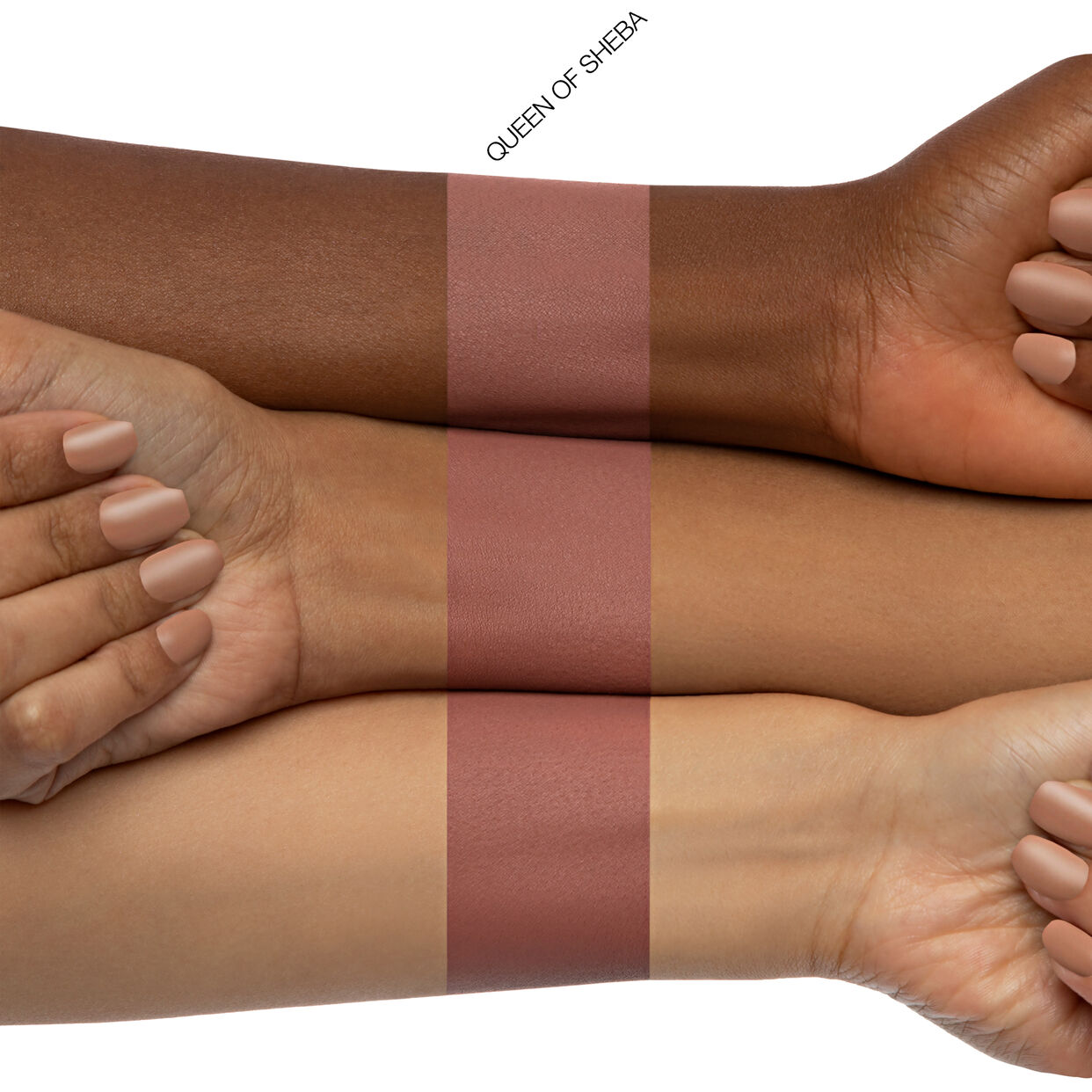 KAYALI’s mouthwatering Yum Pistachio Gelato | 33 is paired with our cult-favorite ‘Queen of Sheba’ Liquid Matte Lipstick for a creamy comfortable nude-pink color to make you feel irresistible.